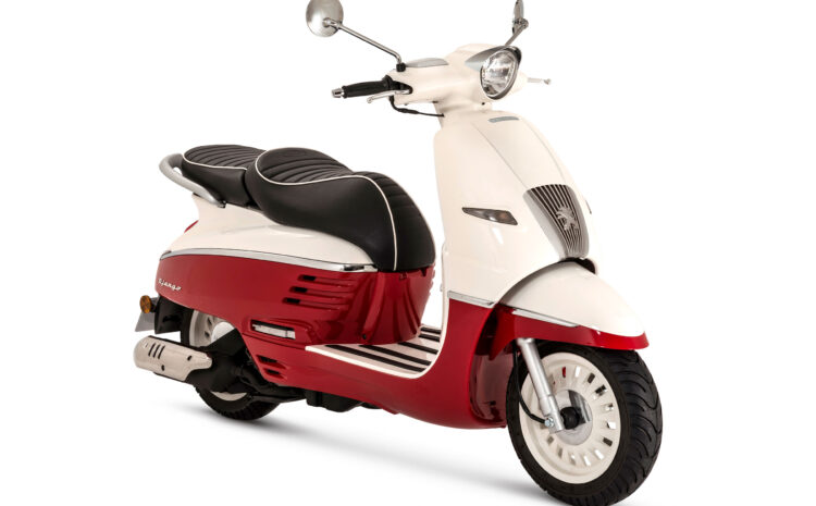 Met de Peugeot Django scooter mag je gezien worden met uitzonderlijke elegantie en chique stijl. Dit model ontleent zijn retro-karakter aan de verfijnde lijnen van het klassieke Peugeot model S57C. Hoewel de looks trouw blijven aan het erfgoed van het merk, is de Django voorzien van moderne technologieën zoals LED-verlichting, een 12 volt oplaadaansluiting voor gadgets en een semi-digitaal dashboard met boordcomputer.