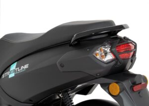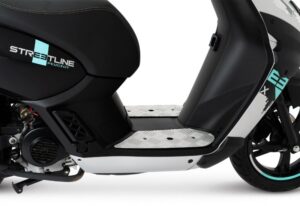 De Peugeot Kisbee Streetline heeft beschermende pads aan de voor & achterzijde. Deze pads beschermen niet alleen je scooter, maar zorgen ook voor een robuuste look.
